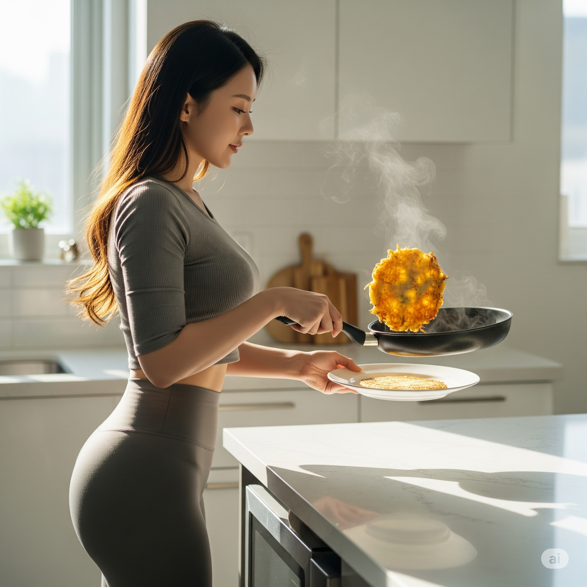감자전을 굽는 과정은 인내심과 섬세함이 필요한 작업입니다. 프라이팬에 식용유를 충분히 두르고, 중불에서 천천히 예열하는 것이 중요합니다. 프라이팬이 충분히 달궈져야 감자전이 눌어붙지 않고 바삭하게 구워집니다. 반죽을 프라이팬에 올릴 때는 얇고 균일하게 펴주는 것이 중요합니다. 반죽이 너무 두꺼우면 속까지 익는 데 시간이 오래 걸리고, 겉은 타버릴 수 있습니다. 감자전을 뒤집을 때는 가장자리가 노릇하게 구워졌는지 확인한 후 뒤집개로 조심스럽게 뒤집어줍니다. 감자전이 찢어지지 않도록 주의해야 합니다.
