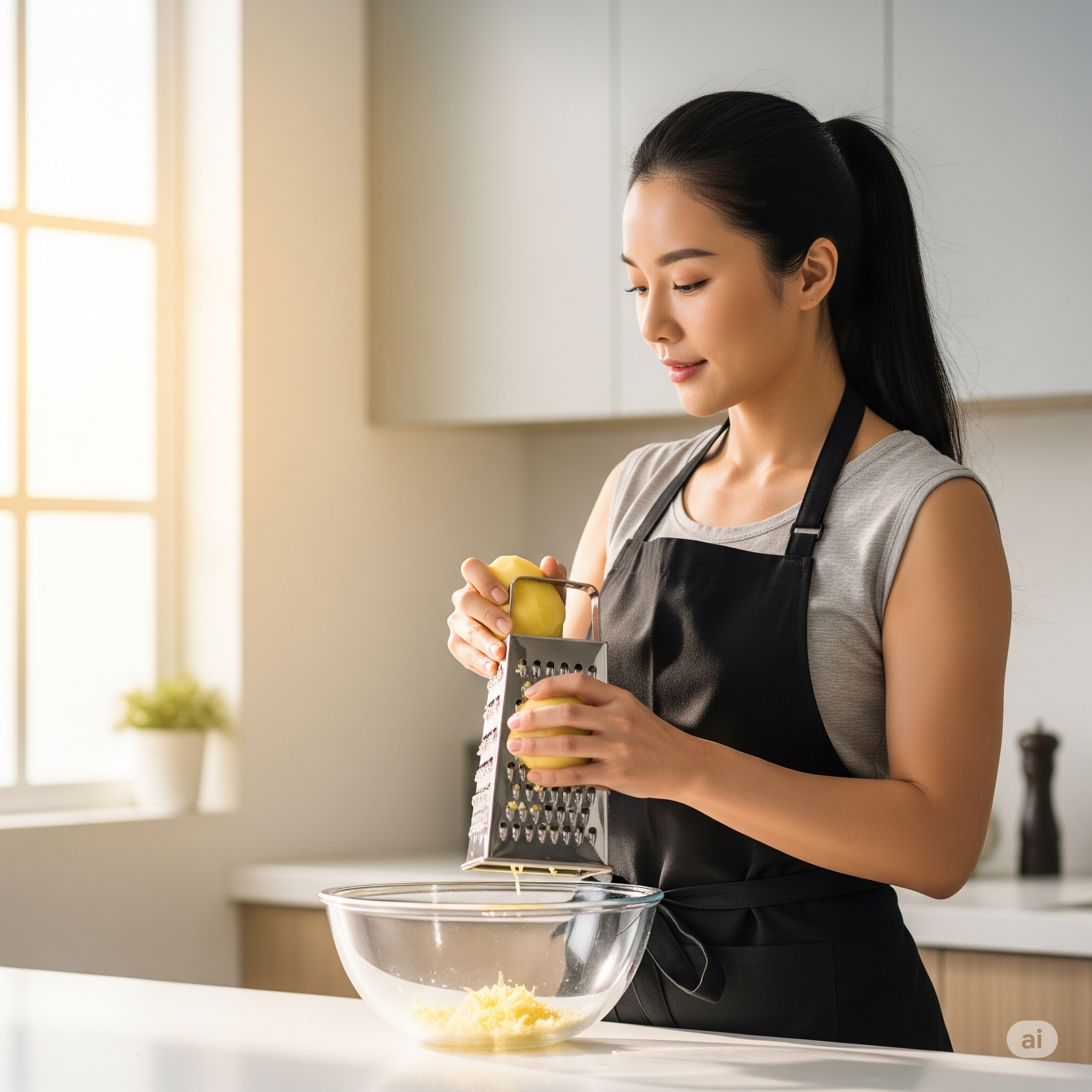 A: 믹서나 푸드 프로세서를 사용해도 되지만, 강판으로 간 감자전과는 식감과 풍미에서 차이가 있을 수 있습니다.